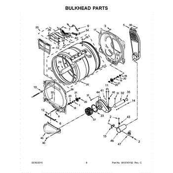 The Housing is an OEM component specifically designed for Whirlpool electric dryers. Found within the rear upper compartment, the square blower housing surrounds and supports the centrifugal fan assembly.