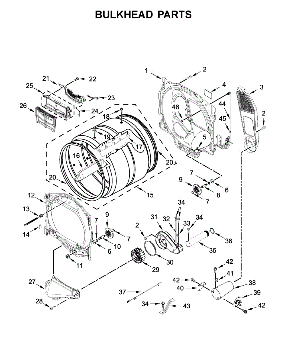 This bulkhead is the structural inner panel that supports and seals the appliance's tub and provides mounting for controls and seals. Replaces a damaged or cracked bulkhead to restore proper alignment and prevent leaks. What it does