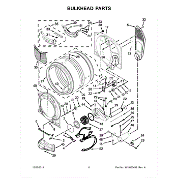 A replacement front drum bulkhead that supports the dryer drum and helps keep the front bearing and seal aligned for smooth rotation. Use this bulkhead to restore proper drum alignment and reduce rubbing, noise, and excessive front play. What it does: