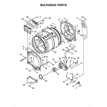 The Housing is an OEM component specifically designed for Whirlpool electric dryers. Found within the rear upper compartment, the square blower housing surrounds and supports the centrifugal fan assembly.