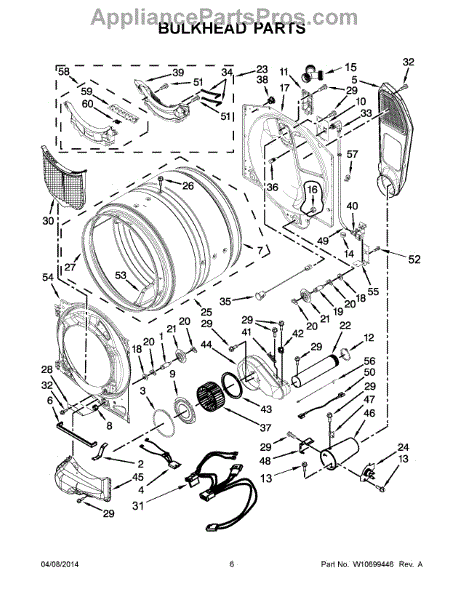 This bulkhead is the front structural panel that supports the dryer drum and seals the front of the cabinet to maintain proper airflow and drum alignment. Replacing a worn bulkhead restores stable drum rotation and prevents air leaks. What it does: