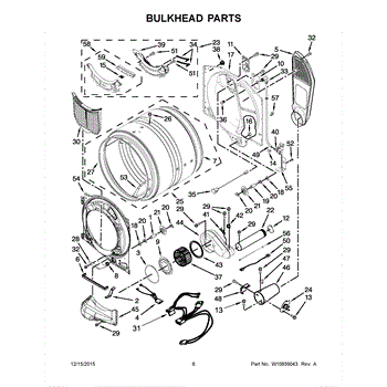 This bulkhead is the front structural panel that supports the dryer drum and seals the front of the cabinet to maintain proper airflow and drum alignment. Replacing a worn bulkhead restores stable drum rotation and prevents air leaks. What it does: