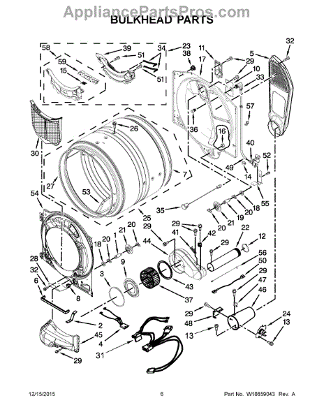 This blower housing assembly replaces the blower chamber that supports the blower wheel and routes air through the dryer for proper tumbling and drying. Restores correct airflow and helps reduce overheating or poor drying performance. What it does: