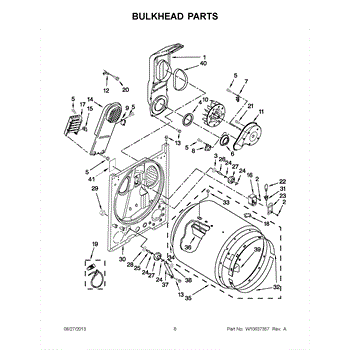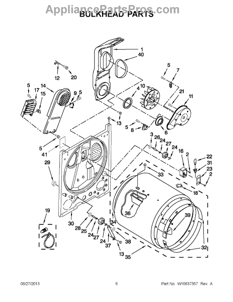 The Rear Panel is an OEM part for Whirlpool dryers. It is an outer protective panel located on the back interior of the dryer drum compartment and helps form the structural walls. The rear panel joins other interior pieces securely and assists with heat retention during the drying cycles.