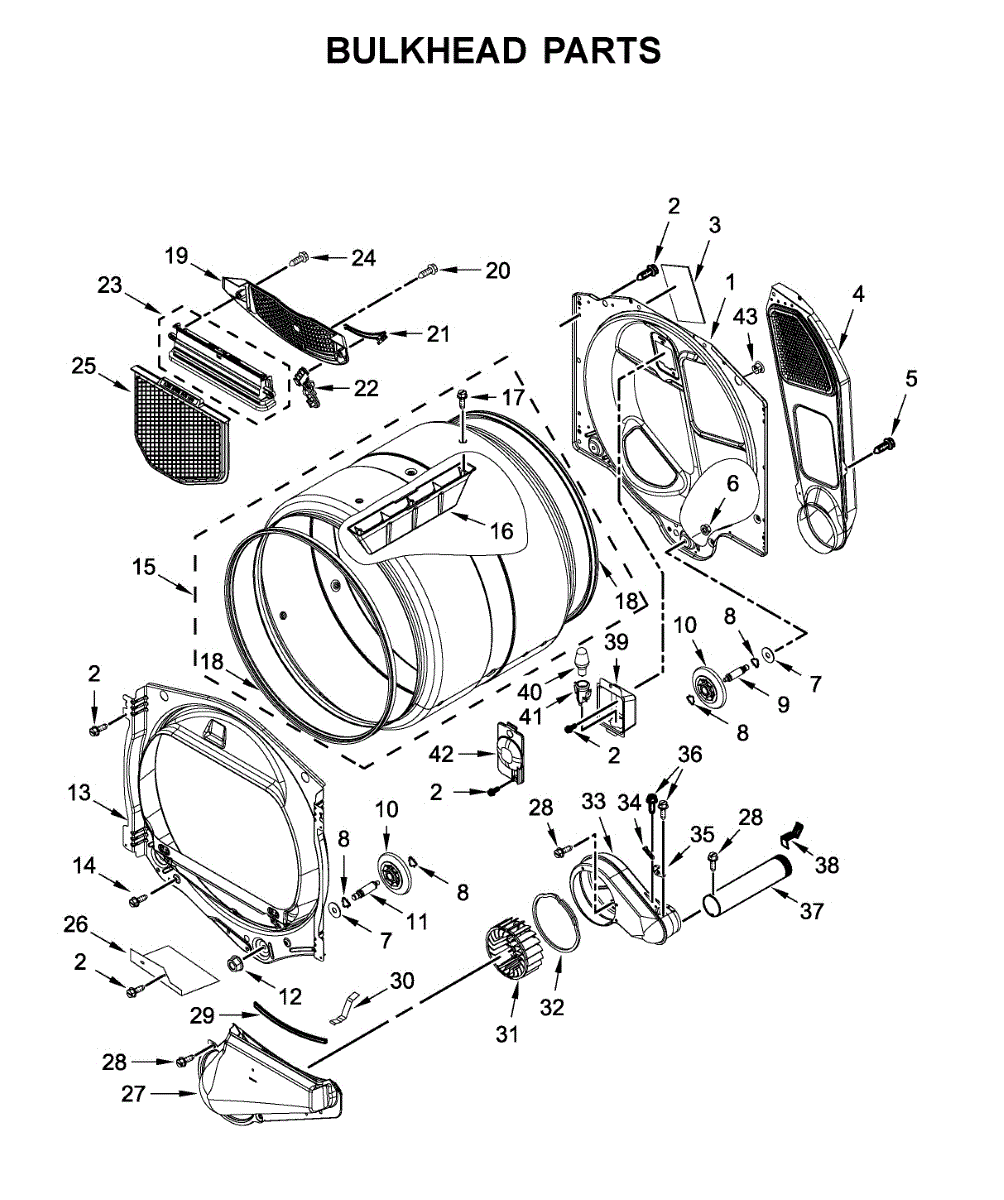 Parts for Whirlpool YWED5100HW1: Bulkhead Parts