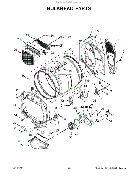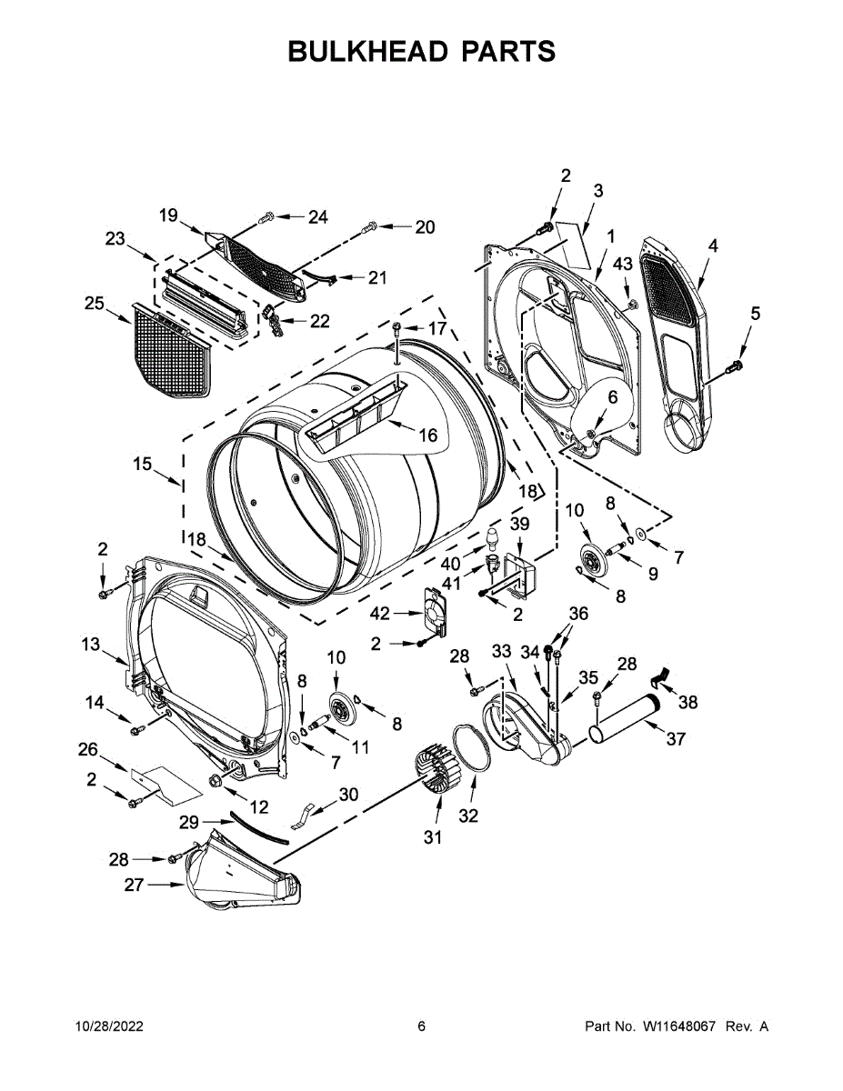 Replace your dryer's front drum bulkhead to restore proper drum alignment and eliminate rubbing, noise, and excessive play. Confirm fit with your model number.