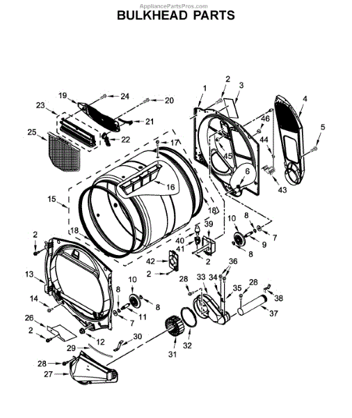 This is a drum assembly used in many home dryers. The component is located inside the appliance and is tasked with holding the clothing during a dryer cycle. It is made of durable materials but can experience wear and tear or damage that cause it to malfunction. If the drum assembly is worn or damaged, it may cause the appliance to buzz or squeal, start and stop, and seize up during use.If the drum assembly is damaged or worn, it will need to be replaced. This will require a set of tools and a pair of work gloves. Before starting the replacement process, make sure the dryer is unplugged from the wall. The dryer will need to be disassembled to access the drum assembly. The belt can be used to pull out the drum so the new component can be installed. Replace the part and reassemble the dryer. It should be plugged back in before use.This part is sold on an individual basis. It is designed to be used with several dryers created by Admiral, Amana, Maytag, Kenmore, and Whirlpool. The drum assembly is an authentic OEM replacement part that is sourced directly from the manufacturer.