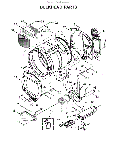 • Provides a mounting surface and seal for the front of the dryer drum to help maintain correct drum alignment