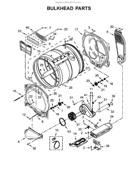 This bulkhead is the structural inner panel that supports and seals the appliance's tub and provides mounting for controls and seals. Replaces a damaged or cracked bulkhead to restore proper alignment and prevent leaks. What it does