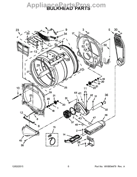 The Housing is an OEM component specifically designed for Whirlpool electric dryers. Found within the rear upper compartment, the square blower housing surrounds and supports the centrifugal fan assembly.
