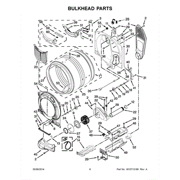 This bulkhead is the front structural panel that supports the dryer drum and seals the front of the cabinet to maintain proper airflow and drum alignment. Replacing a worn bulkhead restores stable drum rotation and prevents air leaks. What it does: