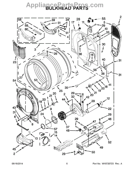 This bulkhead is the front structural panel that supports the dryer drum and seals the front of the cabinet to maintain proper airflow and drum alignment. Replacing a worn bulkhead restores stable drum rotation and prevents air leaks. What it does: