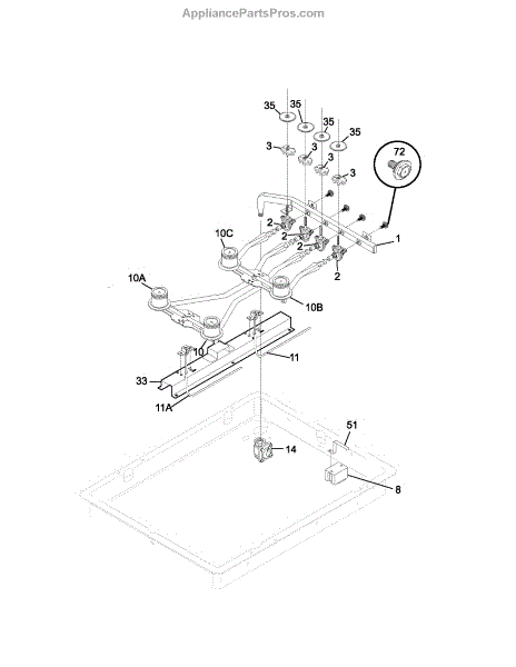 Controls gas flow to range burners. Replace if regulator is worn, leaking, or damaged to restore proper gas delivery and maintain safe operation.