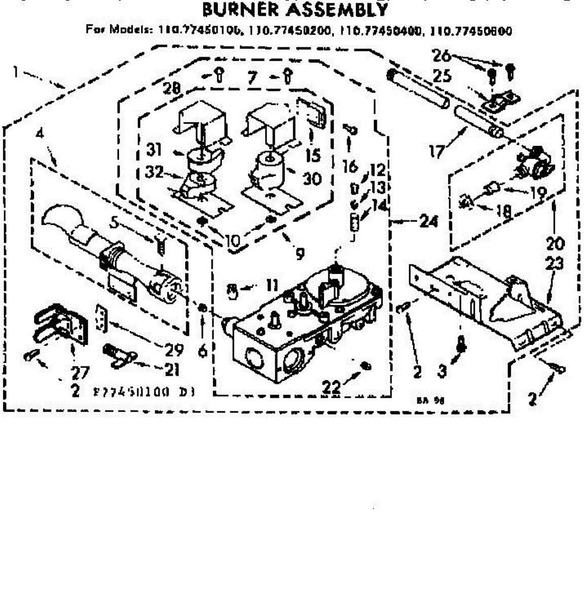 Complete burner assembly with gas valve, coils and igniter. Setup for natural gas.