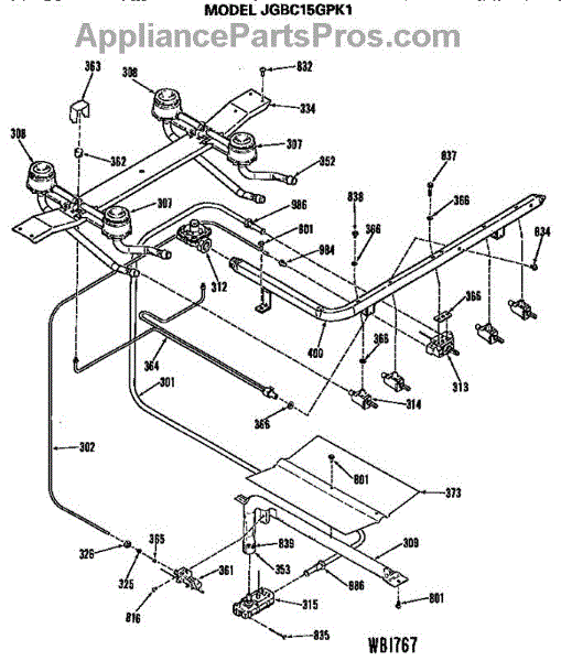 Parts for Ge JGBC15GPK1: Burner Assembly Parts