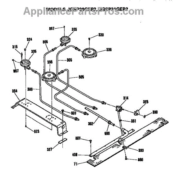 Parts for Ge JGSP30GEP2: Burner Assembly Parts