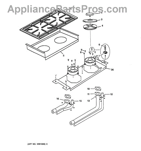 Parts for Ge ZGU36L6YSS: 03 - Burner Assembly Parts