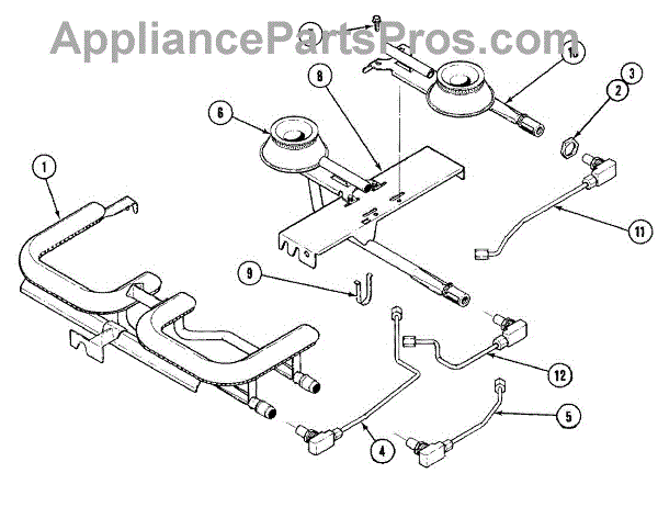 This genuine OEM part is a cooktop grill burner. The grill burner is the component part that allows the gas flame to spark so that the stove can perform its job of cooking and heating. If the stove burners are no longer producing a flame or not turning on at all, it might be time to replace the grill burner. Luckily this is a relatively simple repair.To start, make sure that all power to the stove has been turned off by either unplugging the appliance or shutting off the circuit breaker. Close the shut off valve on the propane gas tank. Remove the cooking grate and the flame tamer from the top of the damaged burner. Pull the cotter pin out of the back of the burner. Remove the burner mounting screws. Pull the burner back then up to remove it from the manifold and remove the burner. Place the new burner into the manifold and fasten the mounting screws. Reinstall the cotter pin and flame tamer and restore the gas and power back to the appliance.This replacement part is sold individually and is compatible with Whirlpool, Maytag, KitchenAid, Jenn-Air, Amana, Magic Chef, Admiral, Norge, Roper, and Sears/Kenmore brand stoves.
