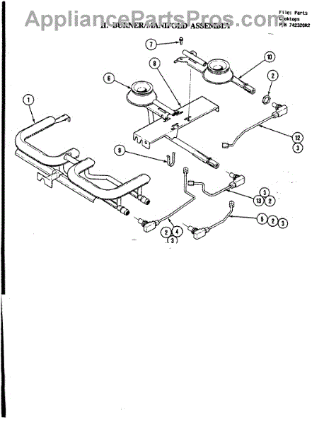 This genuine OEM part is a cooktop grill burner. The grill burner is the component part that allows the gas flame to spark so that the stove can perform its job of cooking and heating. If the stove burners are no longer producing a flame or not turning on at all, it might be time to replace the grill burner. Luckily this is a relatively simple repair.To start, make sure that all power to the stove has been turned off by either unplugging the appliance or shutting off the circuit breaker. Close the shut off valve on the propane gas tank. Remove the cooking grate and the flame tamer from the top of the damaged burner. Pull the cotter pin out of the back of the burner. Remove the burner mounting screws. Pull the burner back then up to remove it from the manifold and remove the burner. Place the new burner into the manifold and fasten the mounting screws. Reinstall the cotter pin and flame tamer and restore the gas and power back to the appliance.This replacement part is sold individually and is compatible with Whirlpool, Maytag, KitchenAid, Jenn-Air, Amana, Magic Chef, Admiral, Norge, Roper, and Sears/Kenmore brand stoves.