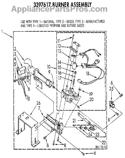 Parts for Kenmore 110.3397617 (1103397617, 110 3397617): 3397617 Burner Assembly Parts