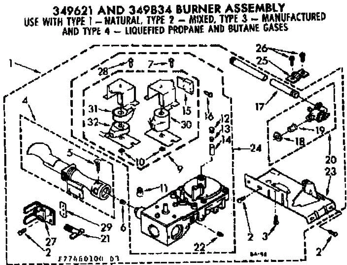 Complete burner assembly with gas valve, coils and igniter. Setup for natural gas.