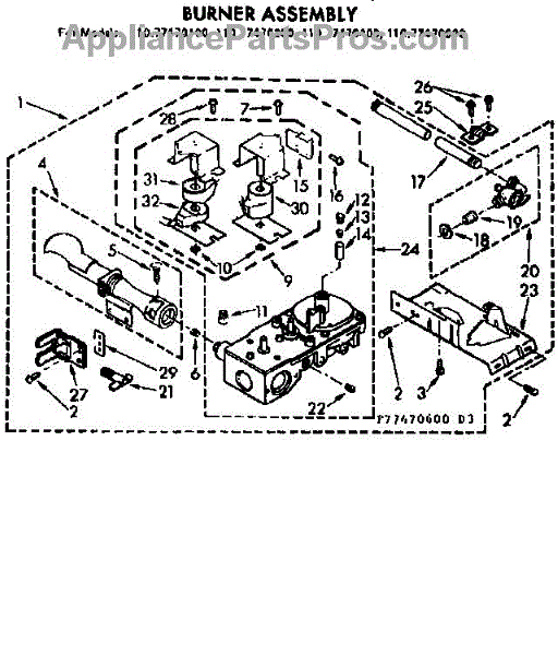 Complete burner assembly with gas valve, coils and igniter. Setup for natural gas.