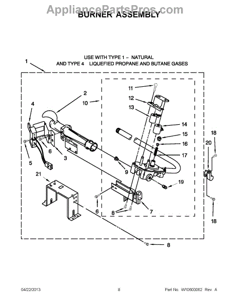 Parts for Whirlpool 7MWGD5600BW0: 04 - Burner Assembly Parts