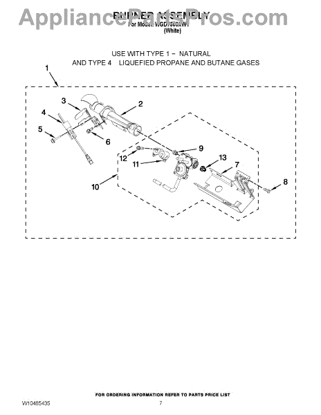 Parts for Whirlpool WGD7600XW1: 04 - Burner Assembly Parts