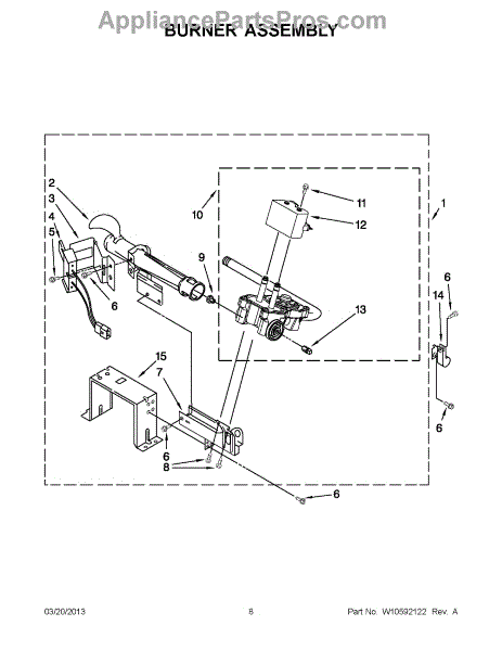 This burner tube channels the gas-air mixture to the burner and includes an adjustable air shutter to set proper combustion. Replacing a damaged assembly helps restore reliable ignition, stable flame, and consistent heating performance.