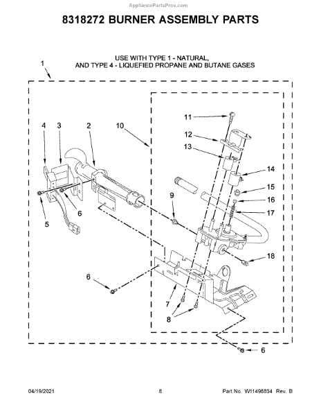 Parts for Maytag 7MMGDC300DW4: 8318272 Burner Assembly Parts