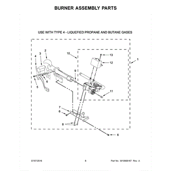 This precision-drilled burner orifice is sized for Type 4 butane applications. It meters gas to the burner so flames ignite reliably and burn cleanly when the appliance is configured for butane per the manufacturer's specifications. What it does: