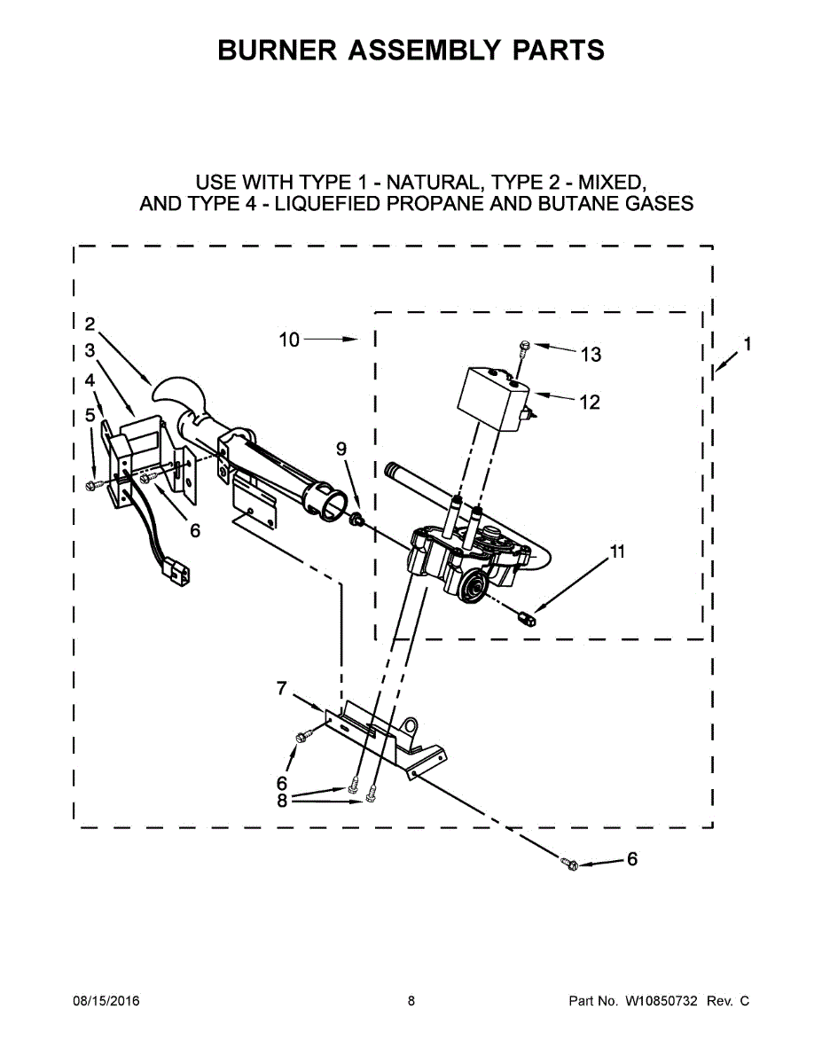 This burner tube channels the gas-air mixture to the burner and includes an adjustable air shutter to set proper combustion. Replacing a damaged assembly helps restore reliable ignition, stable flame, and consistent heating performance.