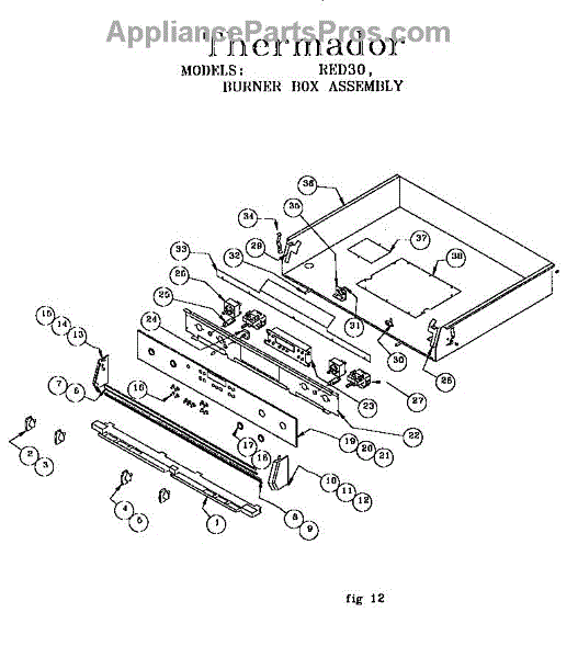 Parts for Thermador RED30VQW / 9708 & UP: Burner Box Assembly Parts