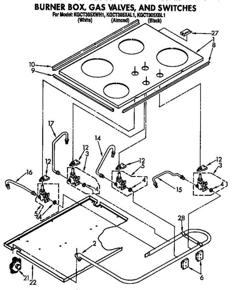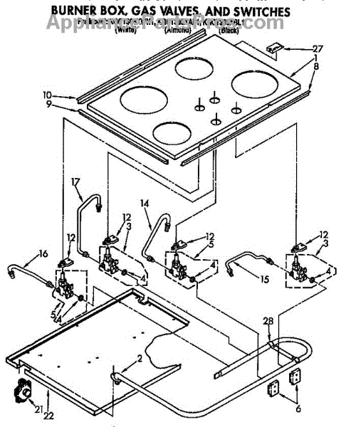 This top burner spark switch sends the electrical signal that creates a spark to ignite a single cooktop burner. Replacing a worn or failed switch restores reliable ignition and helps the affected burner light correctly. What it does