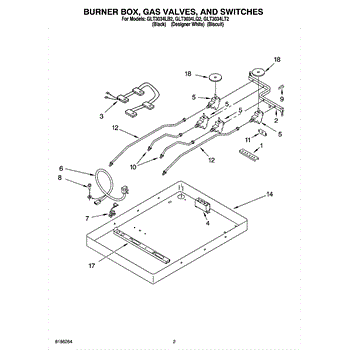 Parts for Whirlpool GLT3034LB2: 02 - Burner Box, Gas Valves, And Switches Parts