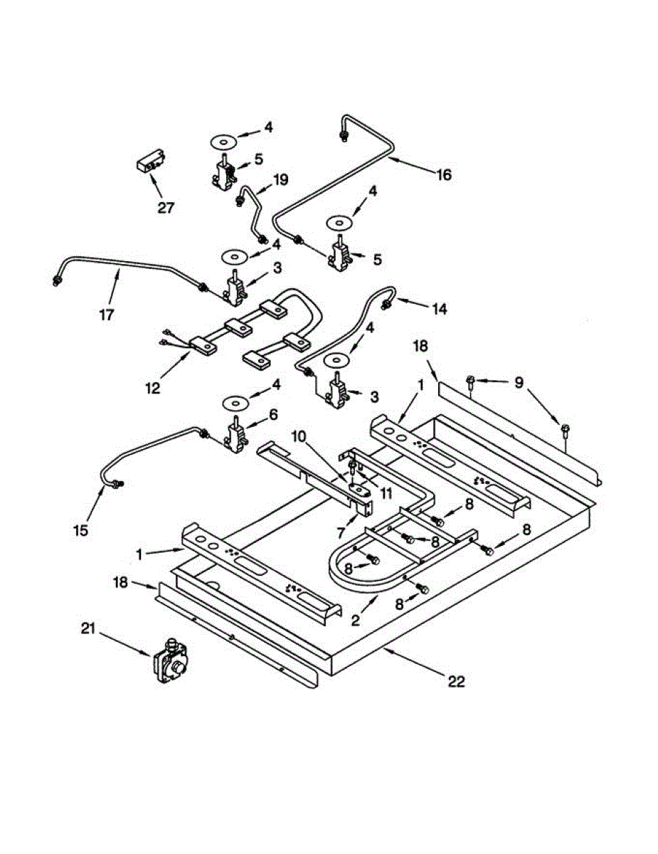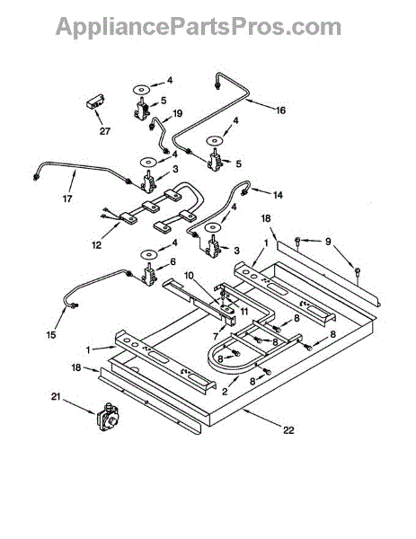 Location: Right front. Gas valve tubing.