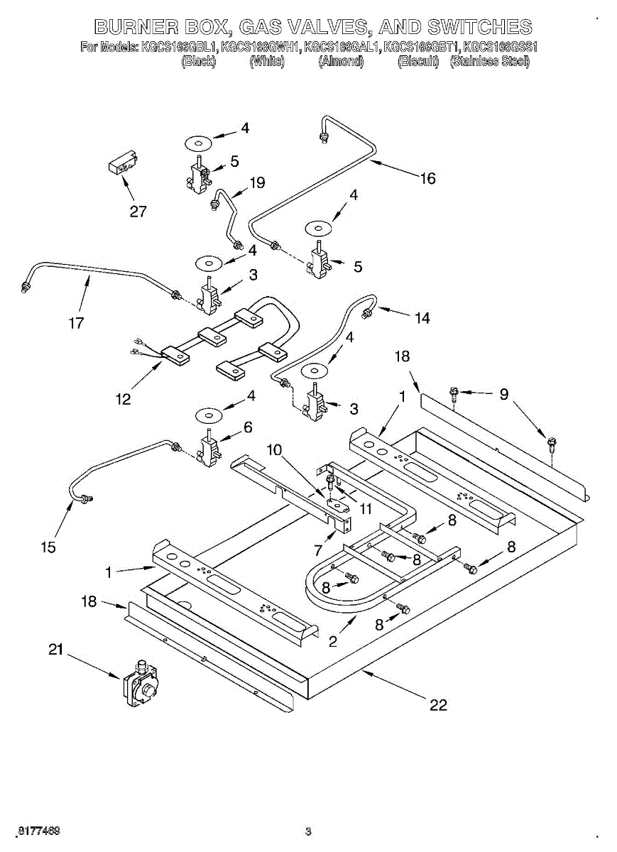 Location: Right front. Gas valve tubing.