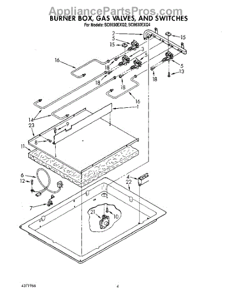 Parts for Whirlpool SC8630EXQ2: 04 - Burner Box, Gas Valves, And Switches Parts