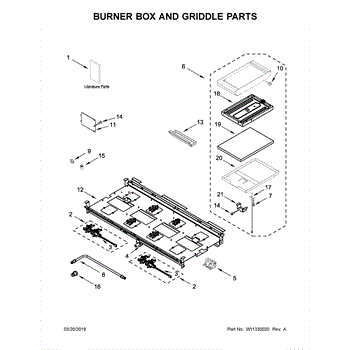 The Drip Tray is an OEM component designed specifically for Whirlpool ranges. Located underneath the range's bottom heating elements, the tray collects moisture, melted cheese, or other baked-on messes during cooking. Its indented surface area and angled drainage grooves route debris toward an easily removed drip cup.