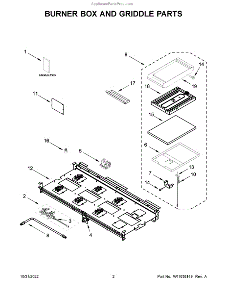 Parts for Kitchenaid KFDC558JYP01: Burner Box And Griddle Parts