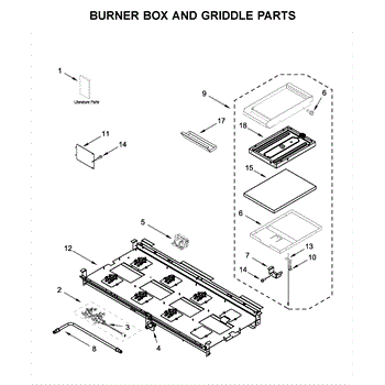 The Drip Tray is an OEM component designed specifically for Whirlpool ranges. Located underneath the range's bottom heating elements, the tray collects moisture, melted cheese, or other baked-on messes during cooking. Its indented surface area and angled drainage grooves route debris toward an easily removed drip cup.