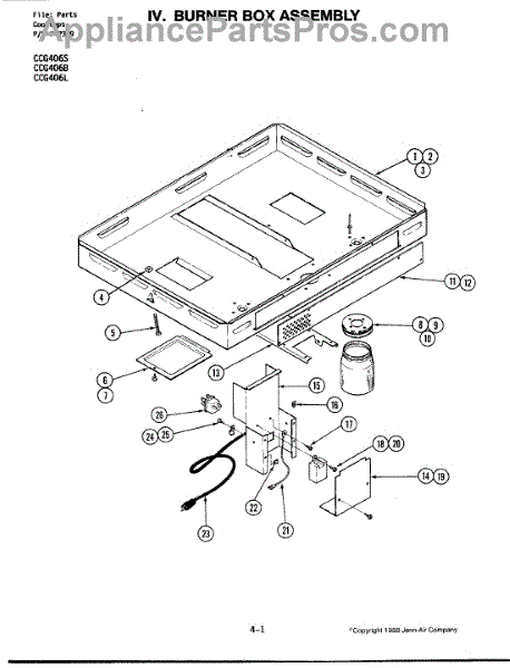 Parts for Jenn-Air CCG406L: 01 - Burner Box Parts