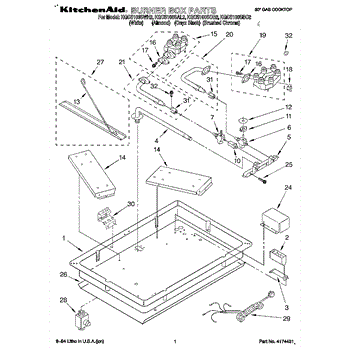 Parts for Kitchenaid KGCS100SWH2: 01 - Burner Box Parts