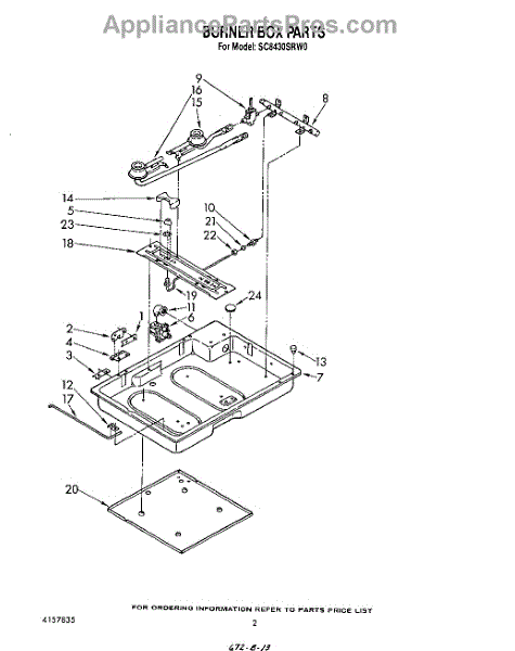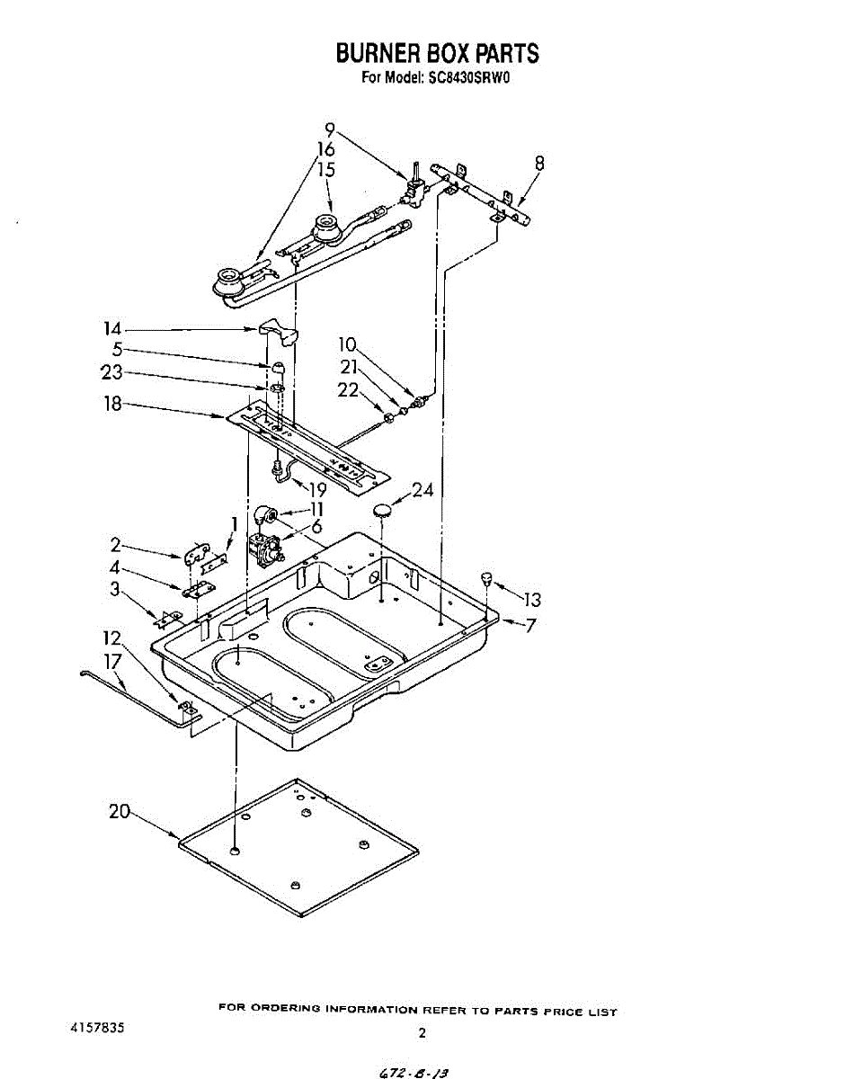 Parts for Whirlpool SC8430SRW0: 02 - Burner Box Parts