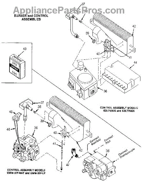 Parts for Suburban UWW-35E-NAT: Burner And Control Assemblies Parts