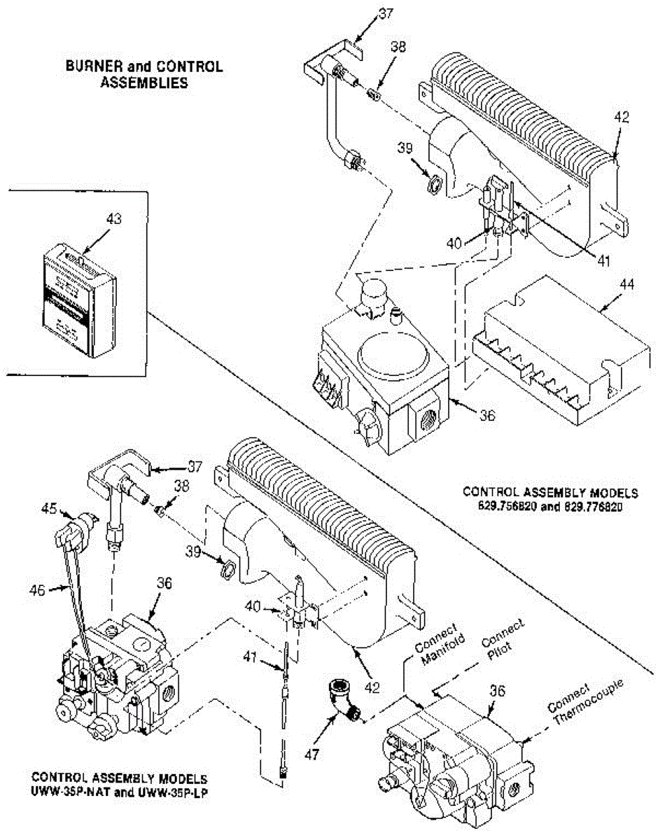 Parts for Suburban UWW-35P-LP: Burner And Control Assemblies Parts