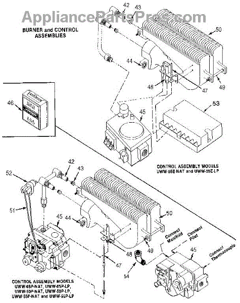 Parts for Suburban UWW-55P-LP: Burner And Control Assemblies Parts
