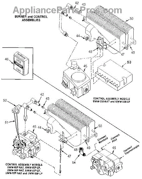 Parts for Suburban UWW-65P-LP: Burner And Control Assemblies Parts