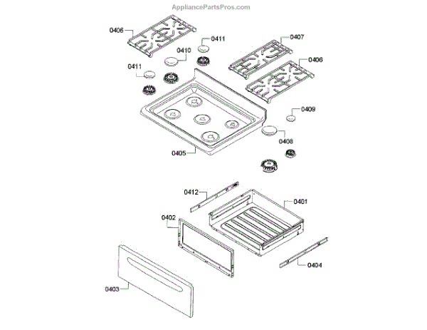 Parts for Bosch HGS3063UC/11: Burner & Drawer Assembly Parts