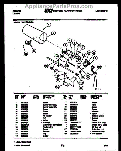 Parts for Frigidaire DG27S6DVFA: 05 - Burner, Igniter And Valve Parts
